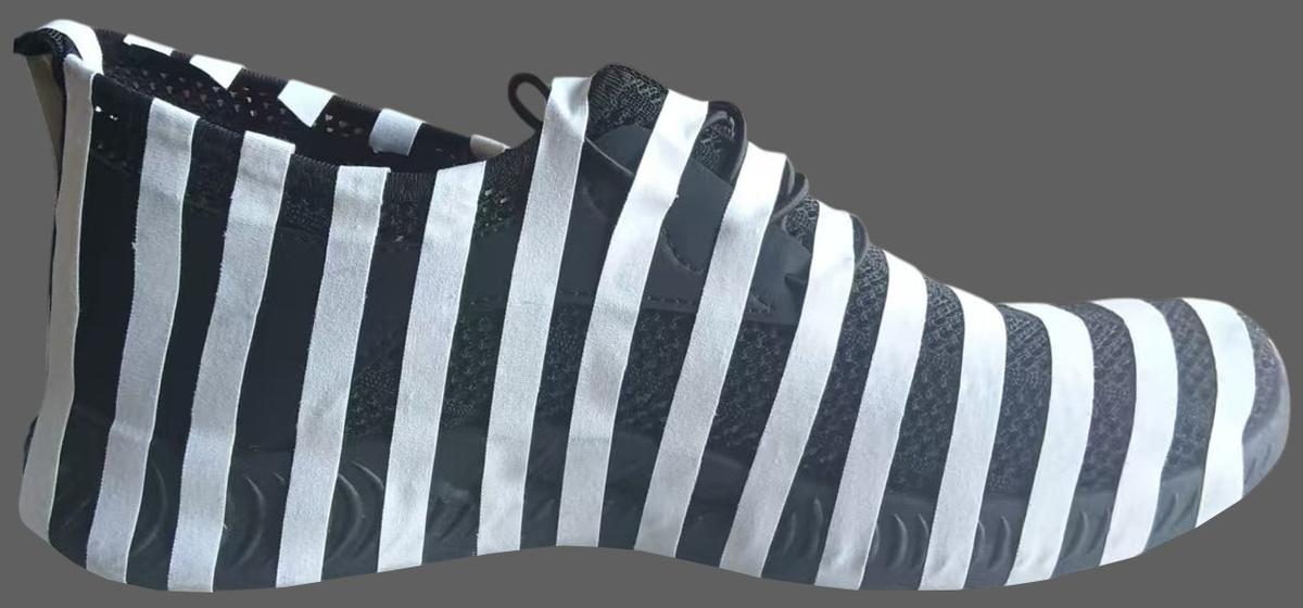1.本外观设计产品的名称:鞋子(斑马纹)。2.本外观设计产品的用途:本外观设计产品用于脚上穿着的鞋子。3.本外观设计产品的设计要点:在于形状与图案的结合。4.最能表明设计要点的图片或照片:立体图。
