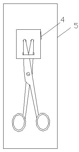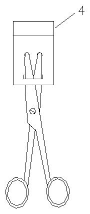 图4:本实用新型的利器保护套用于剪刀的示意图(卡纸最上端的一部分未向卡纸下侧折叠)。