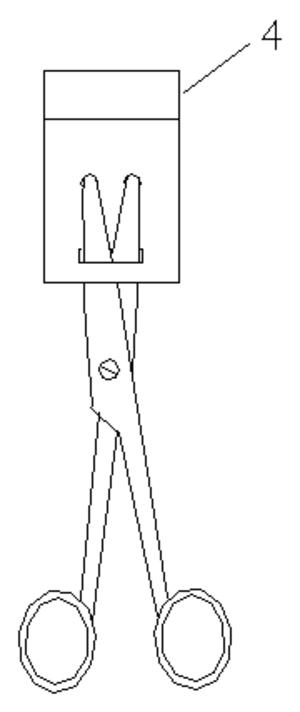 图5:本实用新型的利器保护套用于剪刀的示意图(卡纸最上端的一部分向卡纸下侧折叠,且放入医用纸塑袋内)。