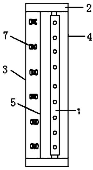 为了便于拆卸,优选的实施方式是,所述第一外框2、第二外框3之间通过螺栓连接。为了避免渗漏并确保装置的密封性,所述第一外框2、第二外框3之间设置密封垫圈。
