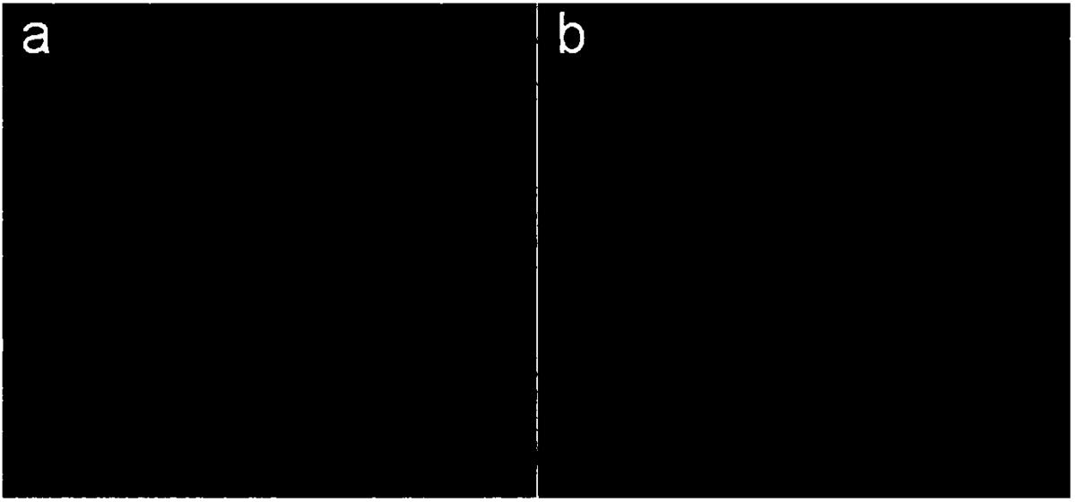 图6是实施例5中用异硫氰酸荧光素标记的SSP-PAMAM-NH2在羟基磷灰石片上吸附后,及异硫氰酸荧光素标记的SSP-PAMAM-NH2在羟基磷灰石片上吸附后使用PBS冲洗后的激光共聚焦显微镜图(a为冲洗前,b为冲洗后);