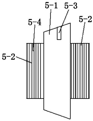 节点管1的端部焊接固定有大头焊接件8,弦杆2的端部焊接固定有小头焊接件7,大头焊接件8和小头焊接件7之间通过锥头连接件5螺纹连接。如图2所示,锥头连接件5包括锥形中间段5-1和位于锥形中间段5-1两侧的外螺纹段一5-2,大头焊接件8和小头焊接件7的端面均设置有与外螺纹段一5-2配合的螺纹孔,如图4所示,其中,外螺纹段一5-2可根据管径大小选择实心型或空心型。当大头焊接件8和小头焊接件7与锥头连接件5旋紧后,锥形中间段5-1夹紧在大头焊接件8和小头焊接件7之间。锥形中间段5-1的周向上设置有径向的销孔5-3,安装时,将转动销10插入销孔5-3内方便转动,便于拧紧弦杆2和节点管1。具体地,锥形中间段5-1两侧的外螺纹段一5-2旋向相反。外螺纹段一5-2上设置有径向的定位孔5-4,小头焊接件7上设置有与该定位孔5-4位置相应的通孔7-1,小头焊接件7和外螺纹段一5-2之间通过插设于该处定位孔5-4和通孔7-1内的限位销(图中未示出)实现限位。较优的,定位孔5-4和通孔7-1的直径略大于限位销。