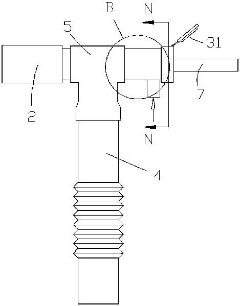 使用时,将纤支镜导管7插入第二管道3中,然后对充气阀6充气,直至气囊鼓起,完全压住纤支镜导管7,然后调节柔质三通管5,使其弯折或转动,处于一个操作方便的位置,然后进行无痛纤支镜操作。当麻醉结束后拆掉本装置时,用手按压阀芯62,使阀片63顶起,气囊8放气,然后抽出纤支镜导管7,然后将整个装置拿下收起。