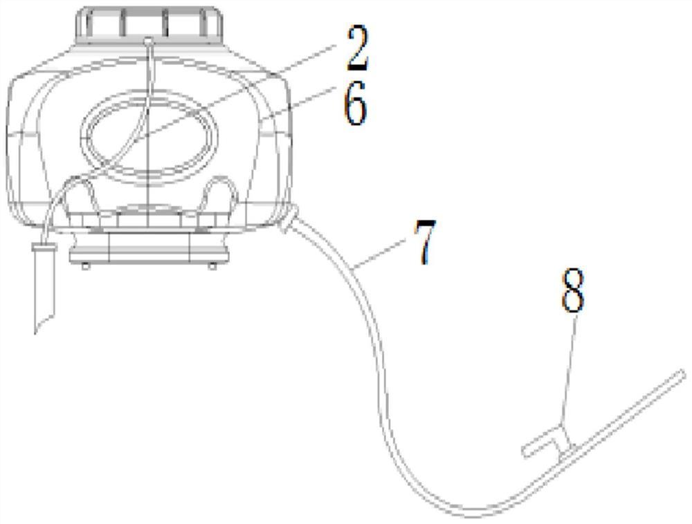 出液管7的内部和直管11的内部相连通,且直管11的外壁设置有与出液管7相匹配的固定扣,药箱6内部的顶端通过进气管2与出风筒3的内部相连通,且进气管2内部的顶端均匀设置有防护滤布;