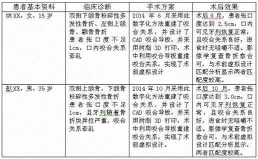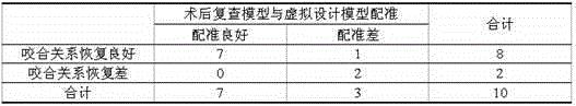 从以上表中可以看出,本发明中导板用于手术重建咬合关系,降低手术难度,缩短手术时间,保证手术效果,提高重建精确度。