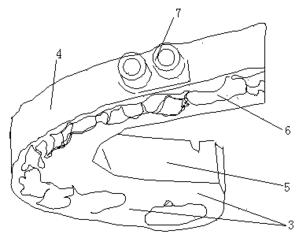 (2)数据处理:将螺旋CT的DICOM数据导入三维编辑软件进行三维重建,根据骨折断端分割出每一个骨折块,再将CBCT的DICOM数据导入三维编辑软件进行牙列的三维重建,按照螺旋CT所示骨折断端的位置,分割牙列,然后分别把相同骨折段的骨折块及牙列的STL数据导入三维编辑软件(geomagicstudio软件)进行数据融合,获得最精确的头颅模型;